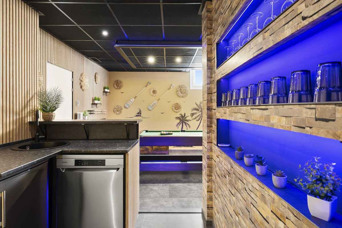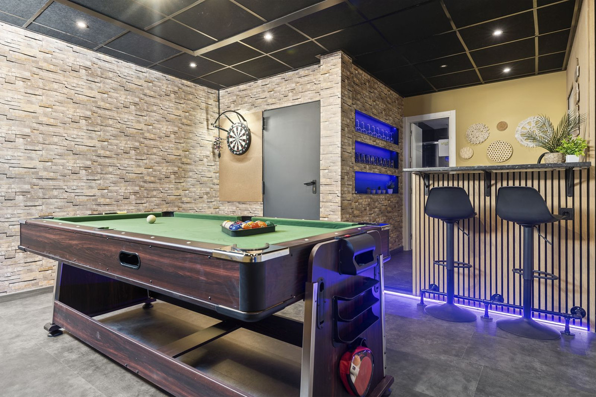 Équipements : Terrasse couverte, Placards intégrés, Terrasse privée, Sauna, Salle de jeux, Appartement d'invités, Débarras, Buanderie, Salle de bains attenante, Jacuzzi, Barbecue, Double vitrage, Domotique, Sous-sol