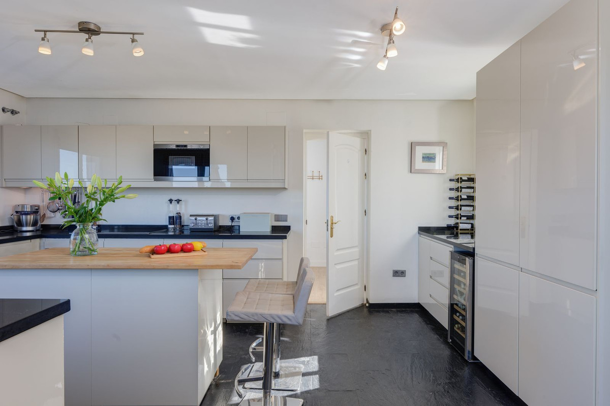 À l'intérieur, la villa allie grandeur et confort intime. Six chambres élégantes (la plupart avec terrasse privée) garantissent à chaque hôte un havre de paix. Le cœur de la maison est un véritable paradis pour les gourmets : une cuisine moderne équipée d'une plaque de cuisson surdimensionnée, de deux fours et d'un immense réfrigérateur-congélateur américain, idéale pour recevoir de nombreux convives.