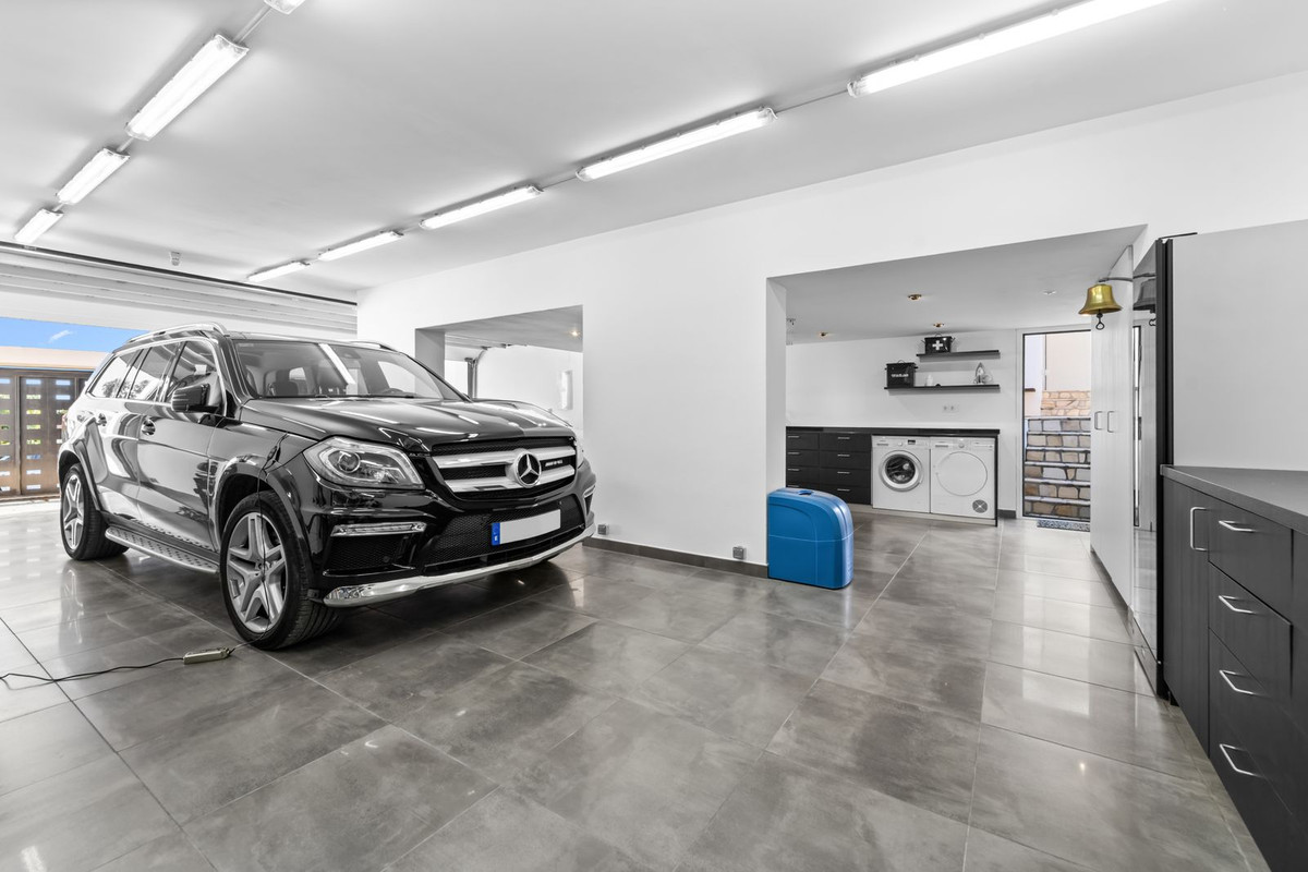 Le niveau inférieur abrite un garage lumineux et spacieux pouvant accueillir jusqu'à quatre véhicules, faisant également office de buanderie avec lave-linge et sèche-linge. Conçu avec soin, cet espace reste sec et protégé même en cas de fortes pluies.