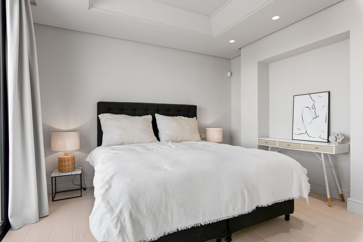 Le niveau principal est dédié à un espace de vie contemporain et ouvert, baigné de lumière naturelle grâce à de grandes baies vitrées qui créent une transition harmonieuse entre l'intérieur et le paysage environnant. De larges portes coulissantes ouvrent sur une vaste terrasse, idéale pour des repas en plein air jusqu'à douze convives avec vue sur la Méditerranée. Ce niveau comprend également une élégante cheminée à gaz, des toilettes invités et une cuisine entièrement équipée avec plans de travail en Silestone et électroménager haut de gamme Miele, complétée par une buanderie extérieure et un charmant jardin.