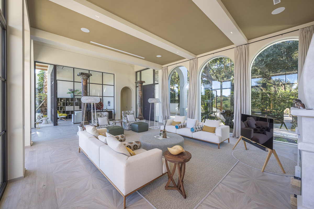 Accessible par une allée paysagée et paisible, la résidence occupe un vaste terrain de plus de 3 300 m², alliant design moderne et environnement naturel. L’architecture de la villa privilégie des lignes épurées, des intérieurs baignés de lumière et une fluidité intuitive entre espaces intérieurs et extérieurs, une caractéristique des propriétés de luxe contemporaines du segment haut de gamme de Sotogrande.