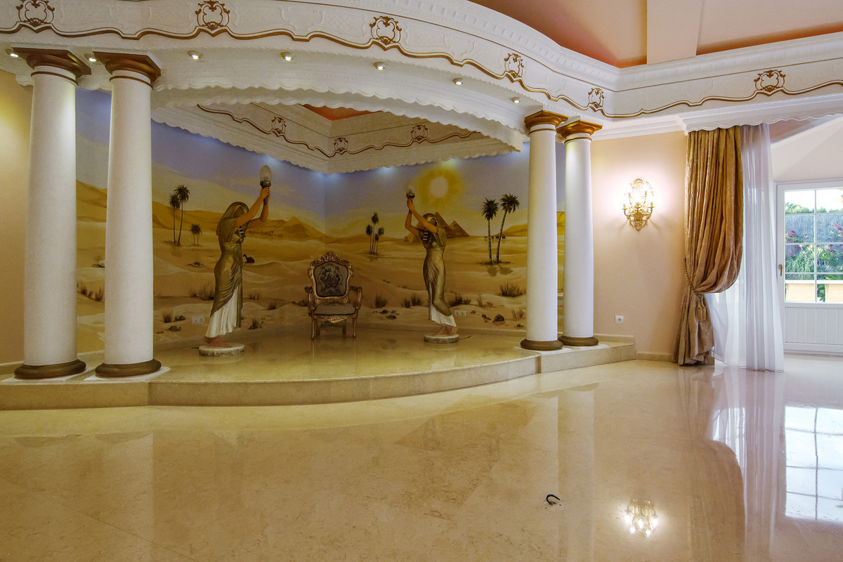 Villa unique à Sotogrande Alto, offrant une vue panoramique sur la mer, Gibraltar, l'Afrique et les montagnes. Située à quelques minutes en voiture du port de Sotogrande, du prestigieux golf de Valderrama et d'autres commodités. Ses atouts principaux comprennent un magnifique jardin privé avec piscine, la climatisation réversible, des sols en marbre, une cuisine entièrement équipée, une salle de jeux, une salle de cinéma, une salle d'opéra (sur le thème du « Fantôme de l'Opéra »), un garage pour 20 voitures, et bien plus encore !