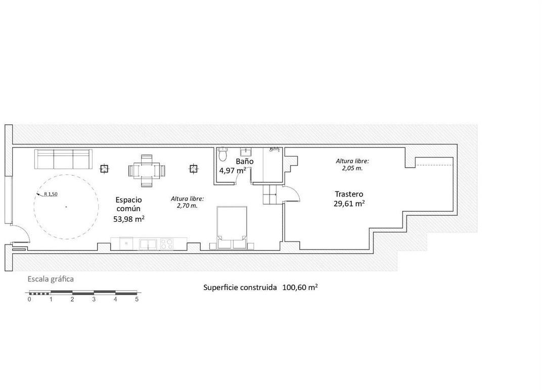 Actuellement, le logement ne dispose pas de cuisine, ce qui représente une excellente opportunité pour la concevoir et l'adapter entièrement à votre style et à vos besoins, augmentant ainsi la flexibilité de l'espace.