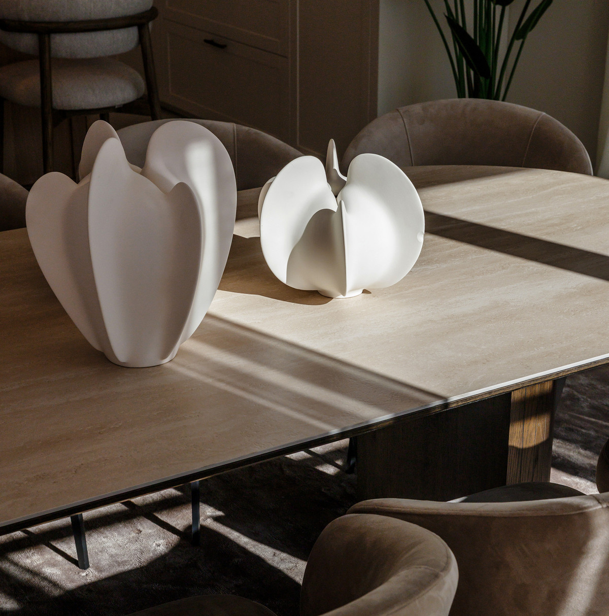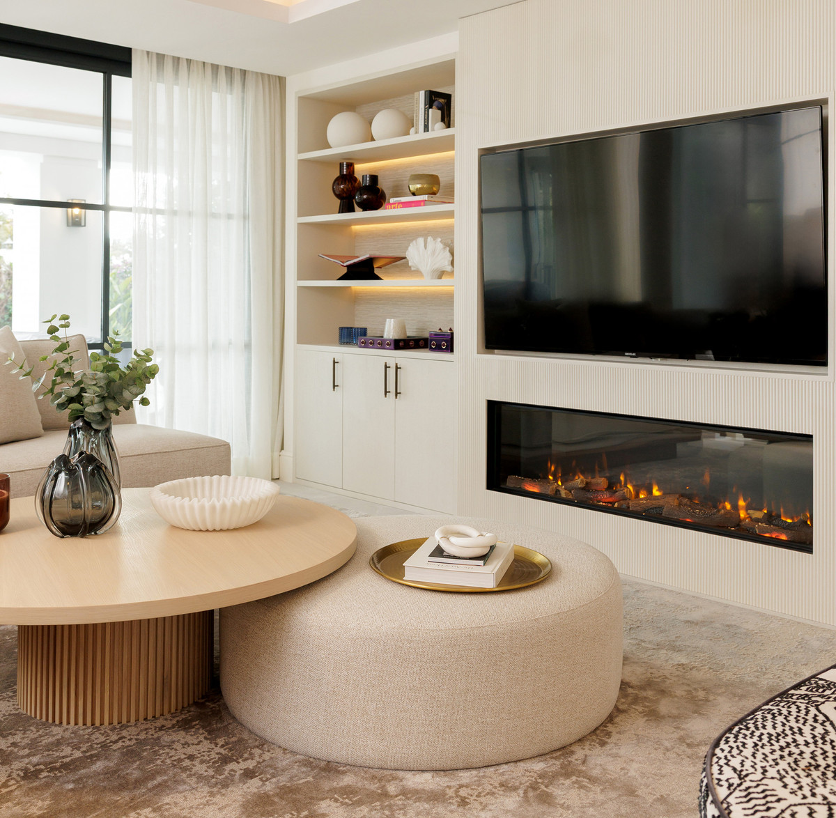 La Villa Agata, située à La Quinta, offre une vue imprenable sur la mer et constitue une maison méditerranéenne moderne. Entièrement rénovée et implantée sur un terrain de 1 109 m², elle présente une architecture remarquable et des intérieurs raffinés signés Soledad Merchant. La pièce de vie principale, lumineuse et ouverte, est dotée de baies vitrées, d'étagères sur mesure et s'ouvre harmonieusement sur l'extérieur. La salle à manger et le salon attenants sont conçus pour un usage quotidien pratique tout en offrant un cadre élégant pour recevoir.