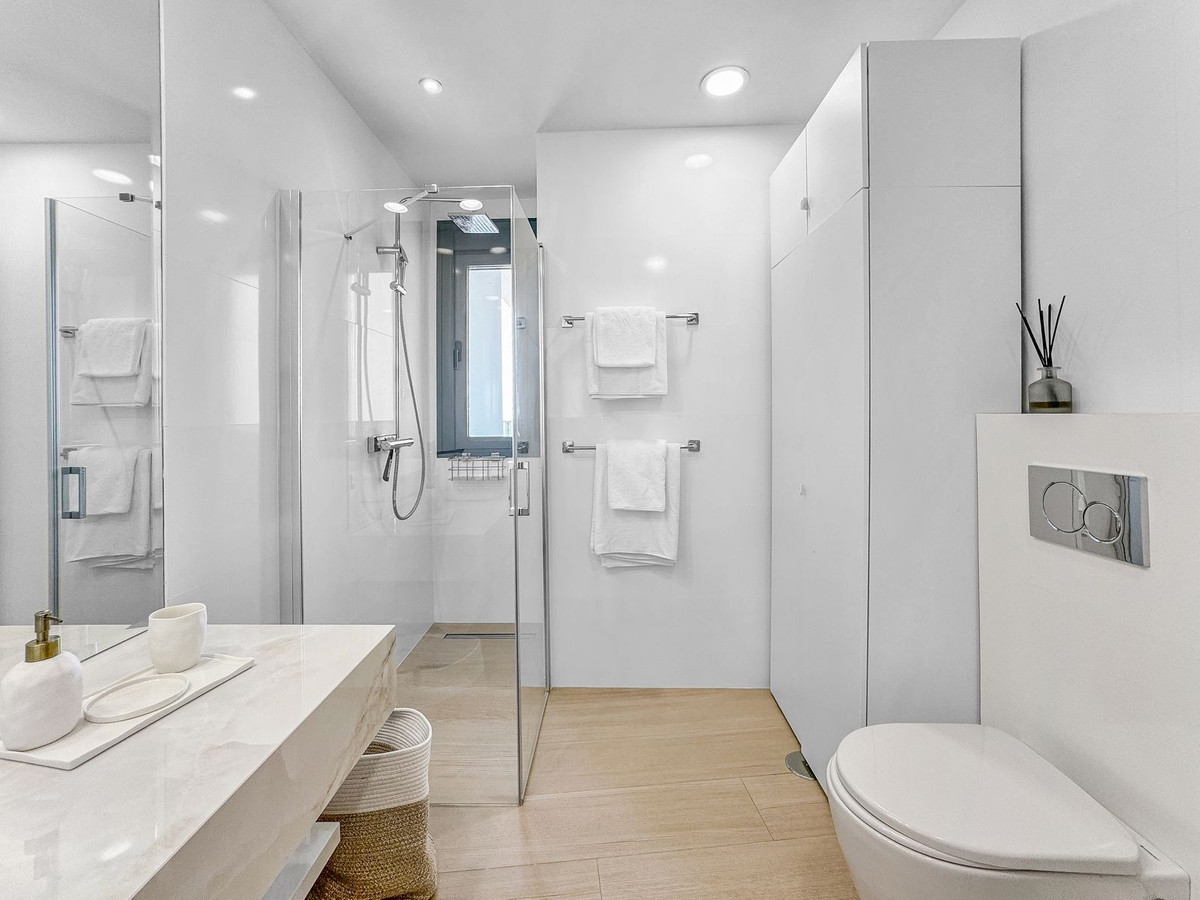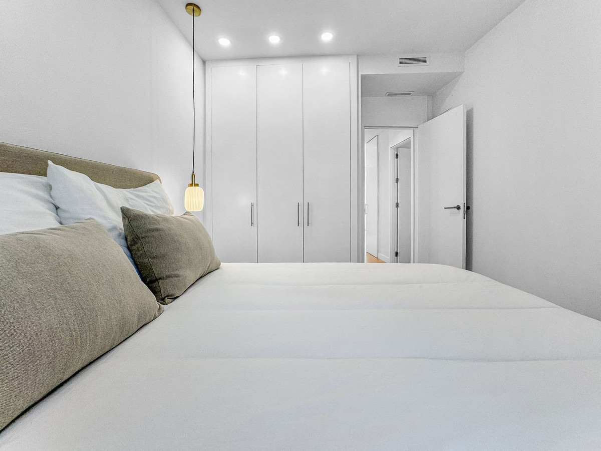 Cet appartement arbore un design minimaliste et moderne, aux tons doux et aux matériaux haut de gamme. Dès l'entrée, un couloir avec miroir et dressing dissimulé mène à un vaste séjour/salle à manger de 40 m², ouvert sur une cuisine Balay entièrement équipée. La vue est tout simplement époustouflante depuis chaque pièce, grâce notamment à deux baies vitrées à triple vitrage (d'une valeur de 10 000 € chacune) qui permettent d'admirer la beauté des environs.