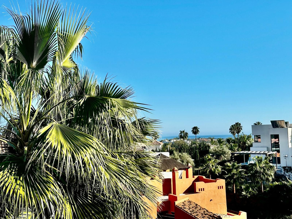 Spectaculaire penthouse en duplex de 3 chambres et 3 salles de bains, situé dans une résidence de standing à Nueva Andalucía. Récemment rénové, il allie élégance et confort. Au rez-de-chaussée, vous trouverez deux chambres spacieuses et deux salles de bains, une cuisine moderne entièrement équipée avec buanderie séparée, ainsi qu'un lumineux séjour/salle à manger donnant sur une magnifique terrasse couverte, idéale pour recevoir famille et amis. Cette terrasse permet également d'accéder à une grande terrasse ouverte, parfaite pour se détendre en plein air. À l'étage, la suite parentale dispose d'une salle de bains privative et d'un accès à un grand solarium privé offrant une vue imprenable sur la mer Méditerranée et les montagnes. La résidence offre un cadre paisible et prestigieux avec des espaces verts aménagés, une piscine et un service de sécurité. Ce bien comprend également deux places de parking et un cellier. Une opportunité unique pour ceux qui recherchent le luxe, le confort et une vue exceptionnelle dans l'un des quartiers les plus exclusifs de Marbella.