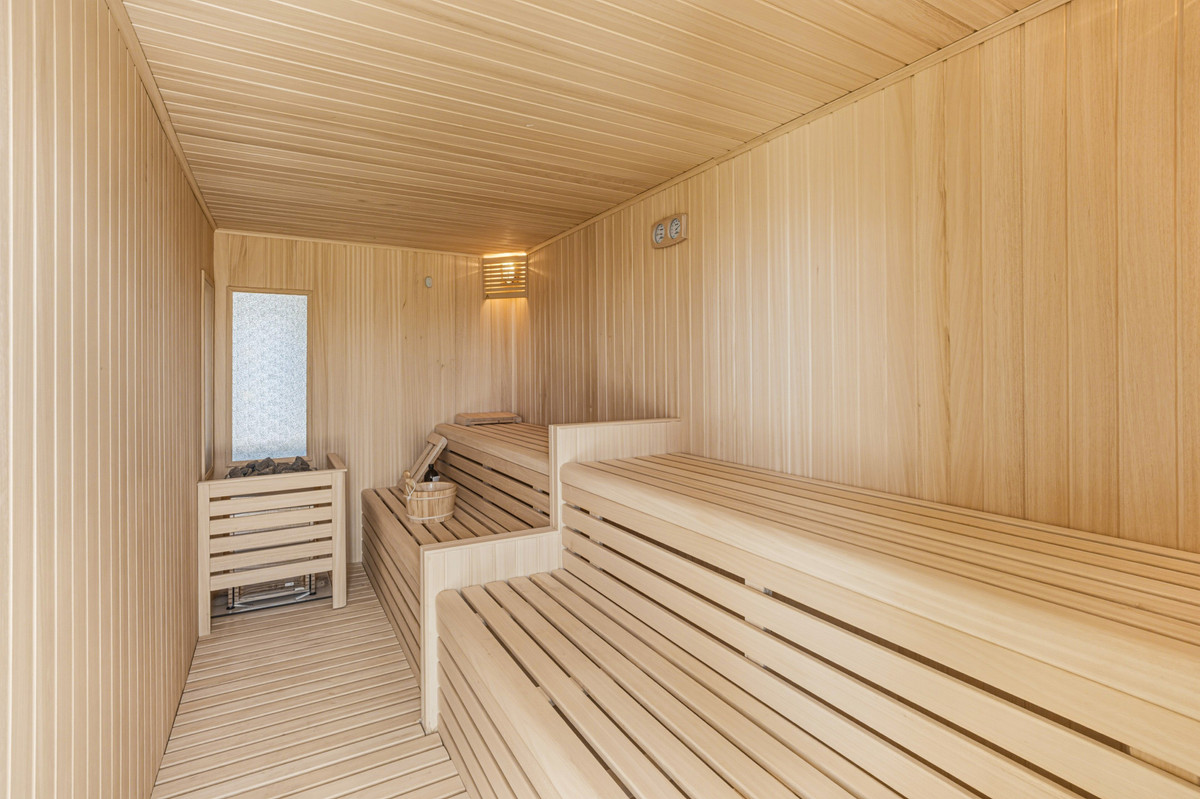 Caractéristiques : Terrasse couverte, Ascenseur, Armoires encastrées, Près des transports, Terrasse privée, Salle de gym, Sauna, Salle de bain attenante