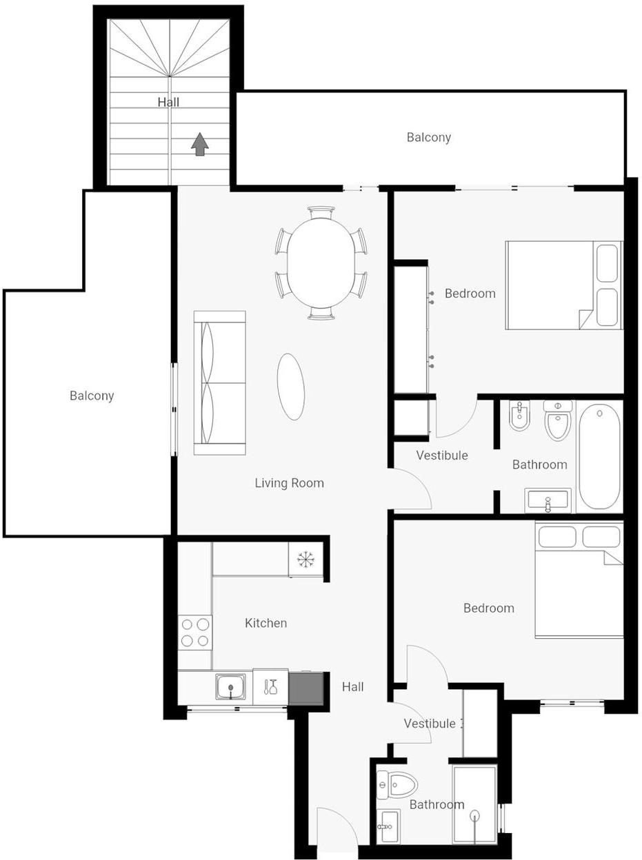Cette propriété offre un agencement bien pensé avec deux chambres spacieuses, chacune dotée d'une salle de bains privative, pour un confort et une intimité optimaux. Le salon lumineux, véritable cœur de la maison, est baigné de lumière naturelle grâce à ses grandes baies vitrées désormais installées. Il s'ouvre sur deux terrasses privatives orientées différemment, idéales pour profiter du soleil du matin comme de la douce lumière du soir.