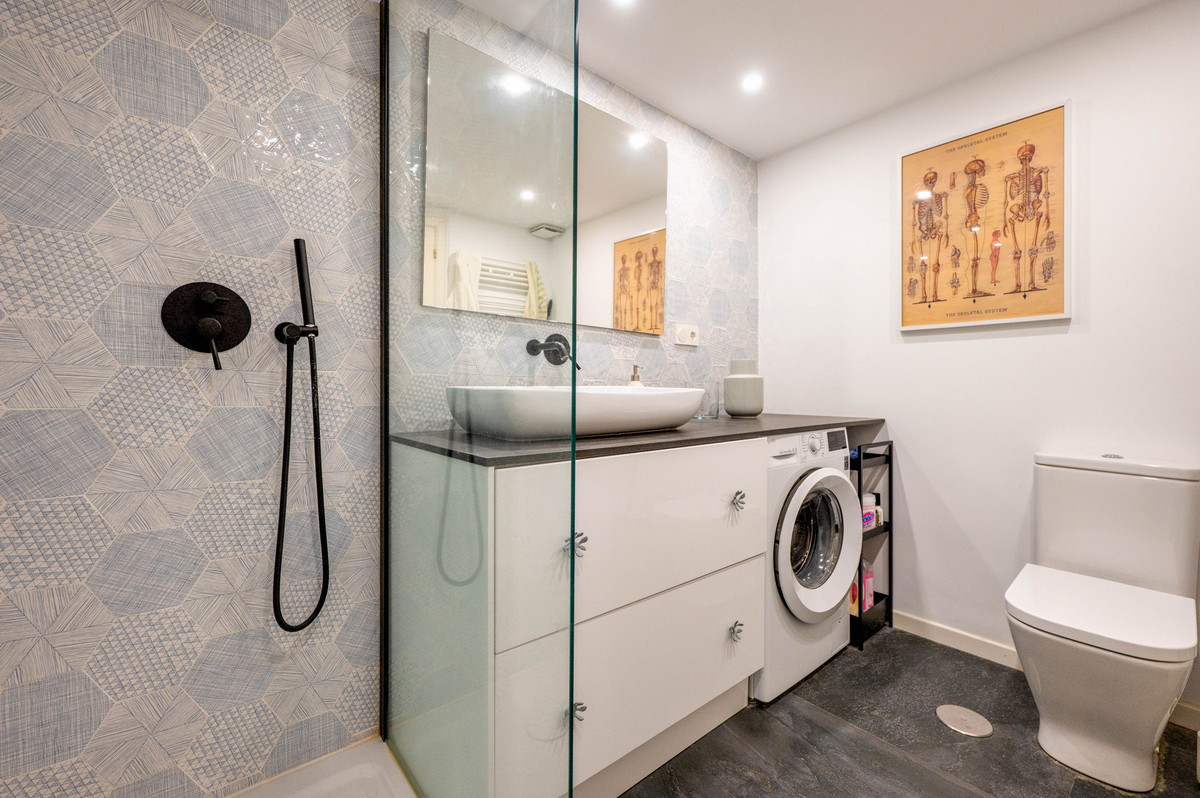 Cette maison offre un agencement lumineux et harmonieux, alliant confort moderne et cachet unique. Les deux chambres bénéficient d'une vue apaisante sur la verdure, tandis que la suite parentale dispose d'une salle de bains privative et d'un dressing, créant ainsi un refuge à la fois confortable et élégant.