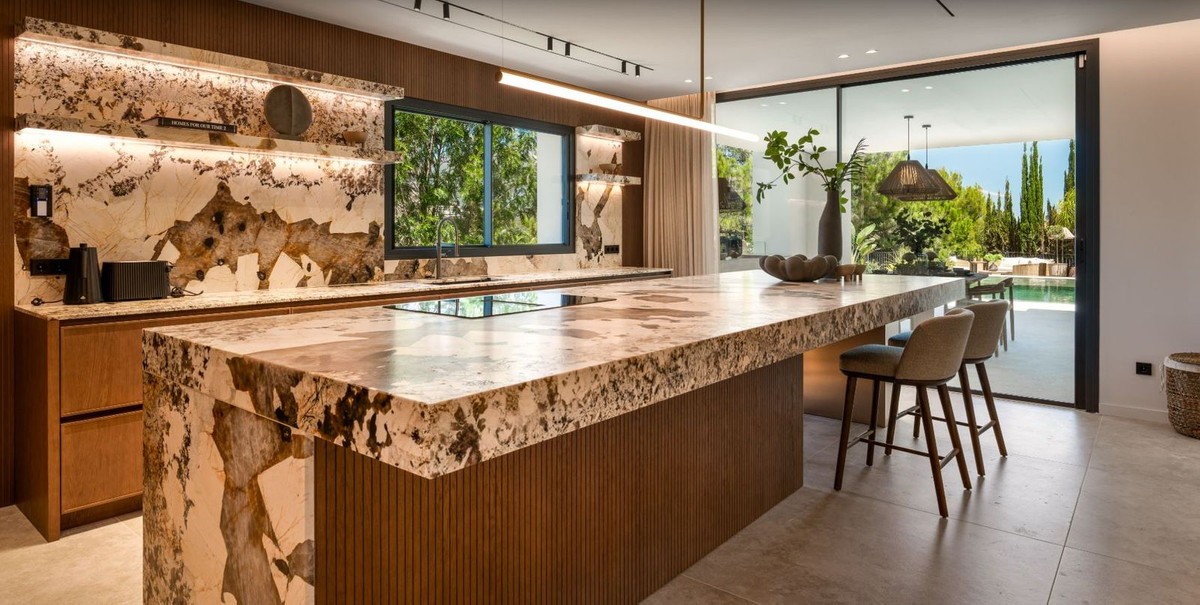 Nichée dans le prestigieux quartier d'El Herrojo, au sein de La Quinta, cette remarquable villa de six chambres allie harmonieusement le charme andalou traditionnel et un design contemporain raffiné. Récemment rénovée avec des matériaux haut de gamme et un souci du détail irréprochable, la propriété dégage une élégance, un confort et un charme intemporel.