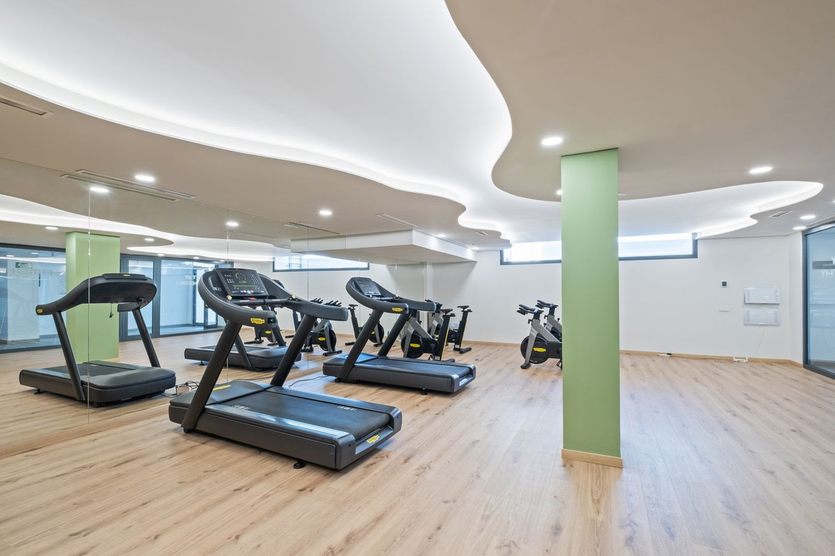 Les résidents bénéficient d'excellentes installations communes, notamment une piscine extérieure, une piscine intérieure, une salle de sport entièrement équipée, un sauna et un espace de baignade relaxant aux eaux turquoise.