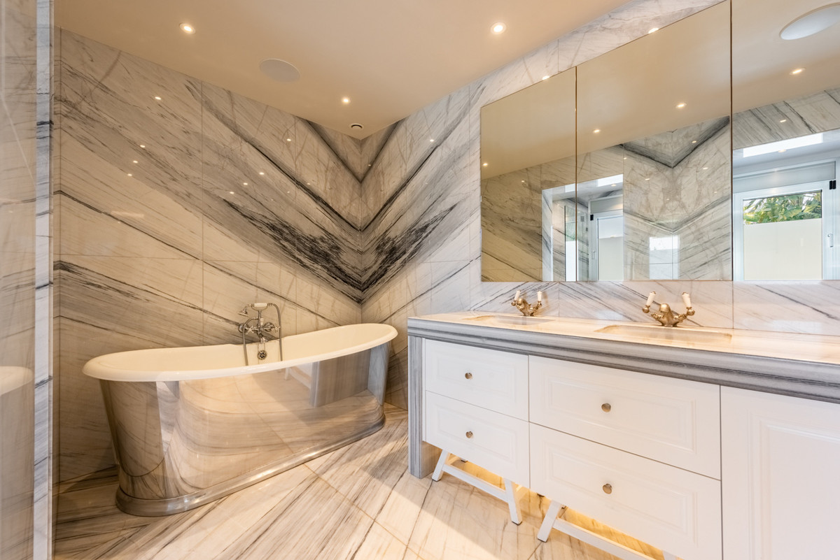 Occupant un vaste terrain de 2 322 m² bordant directement le célèbre parcours de golf de Guadalmina, la propriété bénéficie d'une situation privilégiée au sud avec une vue dégagée sur la verdure, un aménagement paysager mature et une tranquillité absolue, tout en étant à quelques minutes du style de vie animé de la côte.